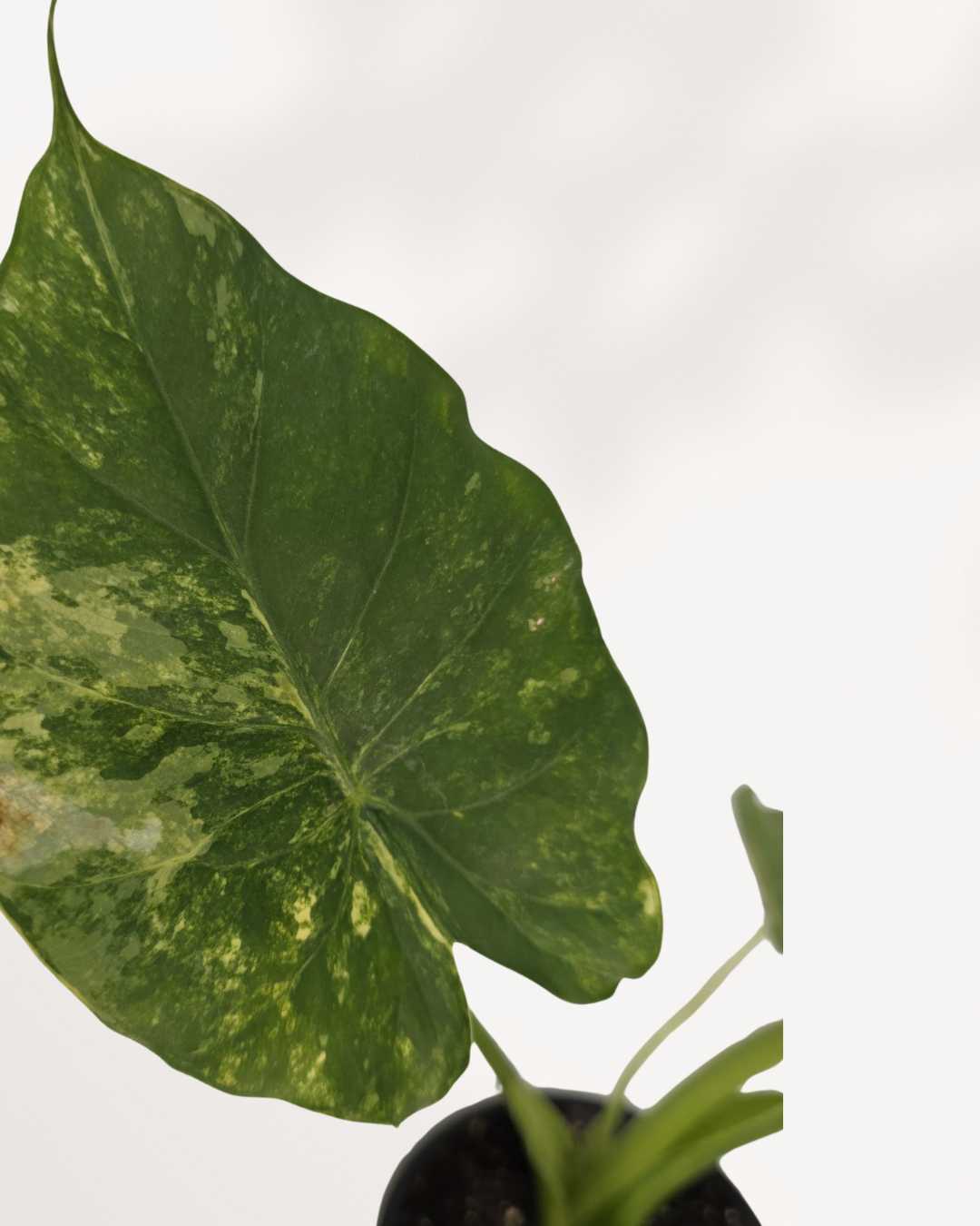 Chaque feuille de l'Alocasia Odora Variegata est une œuvre d'art : large, en forme de cœur, elle est ornée de motifs audacieux de touches de blanc, de crème et de vert. Son port érigé ajoute une touche structurelle à tout espace.