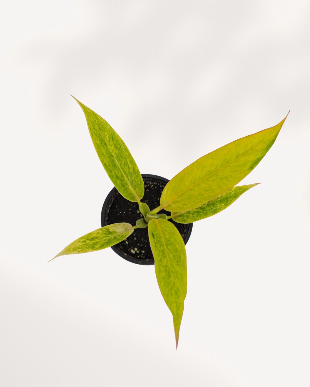 Ready to add a touch of pure radiance and tropical flair to your indoor jungle? The **Philodendron Calkins Gold** is a spectacular vining Aroid that looks like it’s been brushed with sunshine. Distinguished by its elongated, spade-shaped leaves marbled with stunning shades of deep emerald, vibrant lime, and brilliant golden-yellow, every leaf is a unique work of art. Whether you let it trail elegantly from a hanging basket or train it up a moss pole to reach new heights, the Calkins Gold delivers a lush aesthetic with surprisingly easy-going care requirements.